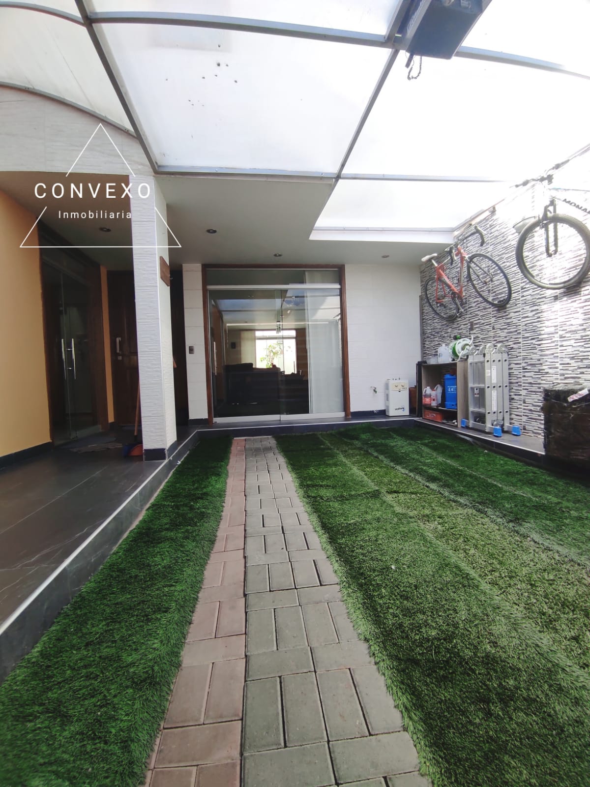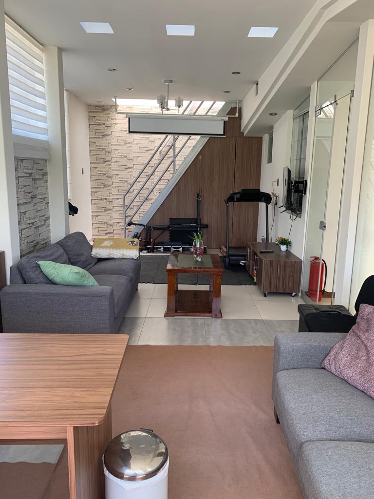 Amplia y bien iluminada Sala Comedor, área de bar, baño de visita, patio posterior con área de parrillas, lavandería, jardín y cochera.