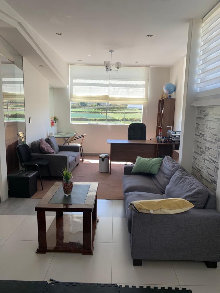 LINDA CASA CON UNA PRIVILEGIADA VISTA A LA CAMPIÑA DE SACHACA, EN URB CERRADA, RESIDENCIAL ”LA PLANICIE”, PARA DISFRUTAR DE LA TRANQUILIDAD DEL HOGAR, MUY BIEN ILUMINADA DE LUZ NATURAL Y CLIMA, CUENTA CON ACABADOS DE PRIMERA, PISOS PORCELANATO Y MELAMINA AREA DE PARRILLAS, PATIO POSTERIOR Y AMPLIA COCHERA, CASETA DE SEGURIDAD LA 24 HORAS, DISTRIBUIDA COMO SIGUIE: